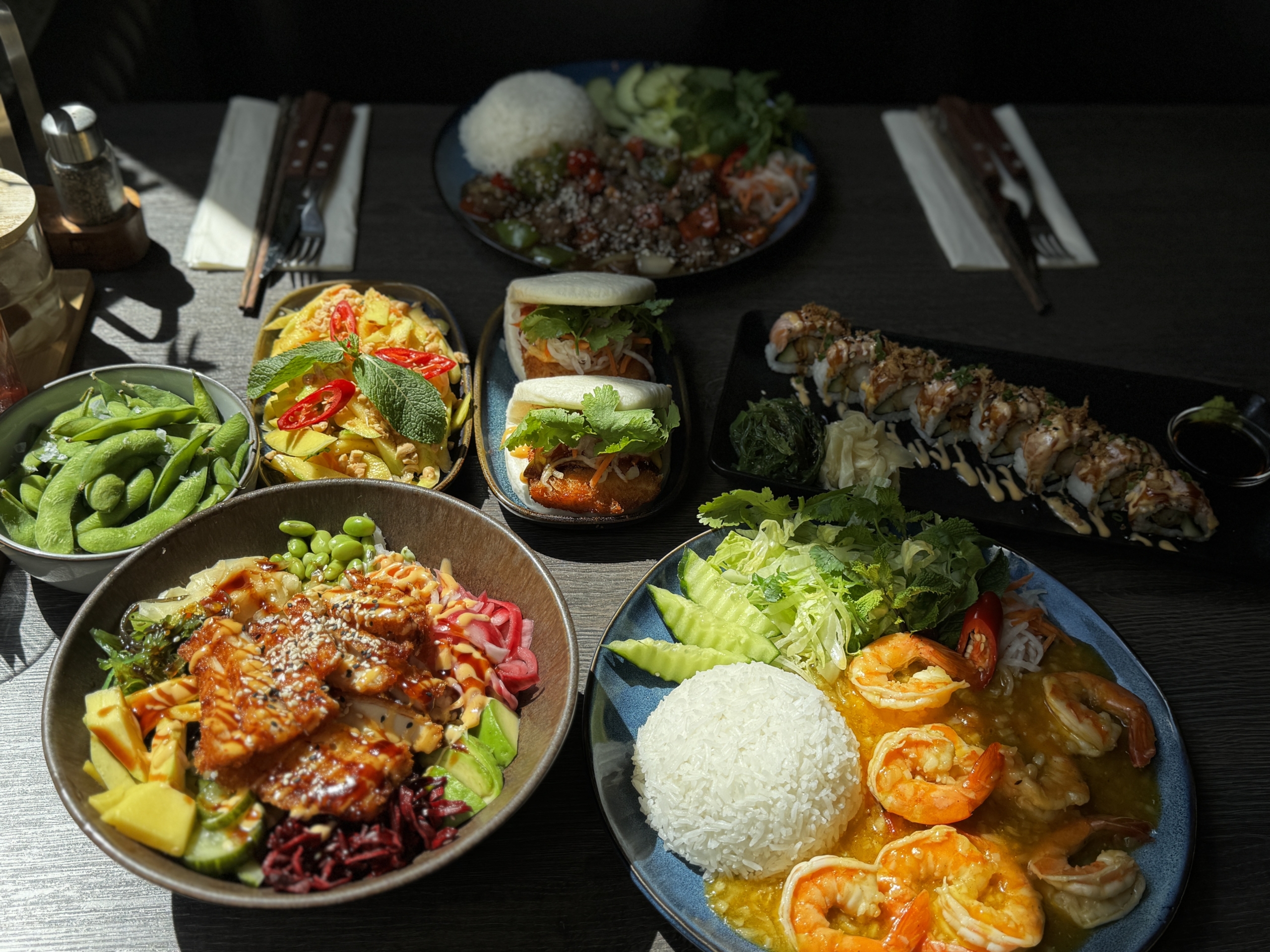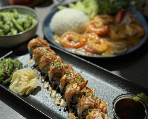 Vi har en mängd olika rätter som vietnamesisk mat och sushi, samt många drycker.